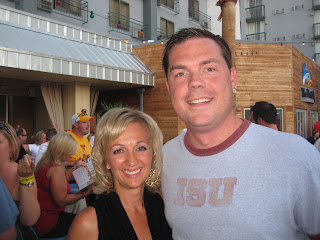 After the pool, we quickly got ready and headed across the street to Hooters where the official Iowa State Pep Rally was being held. I should add this was my first time ever setting foot in a Hooters. It was fabulous out by their trashy pool...we saw tons of friends and others we hadn't seen in years.